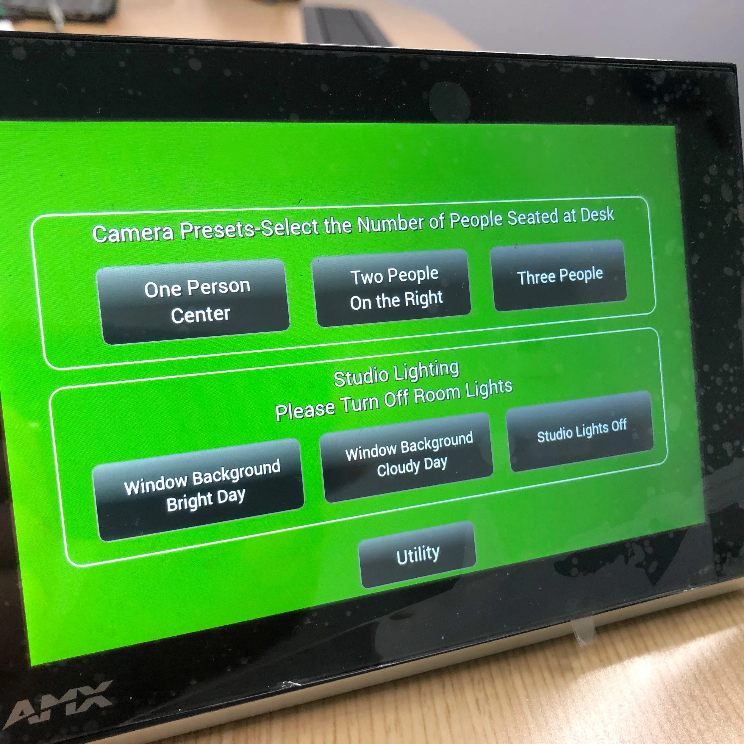 The initial plan was to build a single-person studio, but that grew to a three-person space, so we needed a straightforward way for an executive to select the camera’s pan, tilt, and zoom functions.